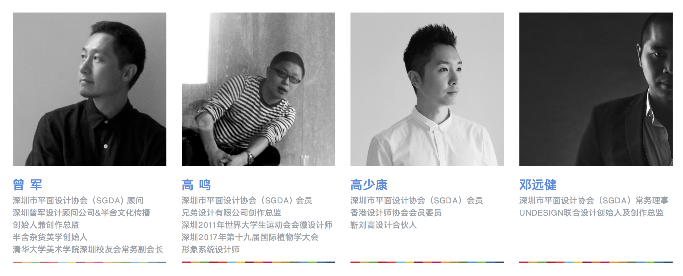 曾军、高鸣、高少康、邓远健,这四位精英设计师将从创造性、思想性、艺术性和传播特性等角度,对所有提交作品进行评判、甄别及褒奖。在10月28日即将截稿的时间,再次发出呼吁,希望可以引导青年人关注全球正在面临的经济、社会和环境问题与自身的关系,解读和思考这些世界性难题的现状、原因和解决思路,为17个目标设计推广传播作品,并通过持续的行动影响更多人积极参与改变。